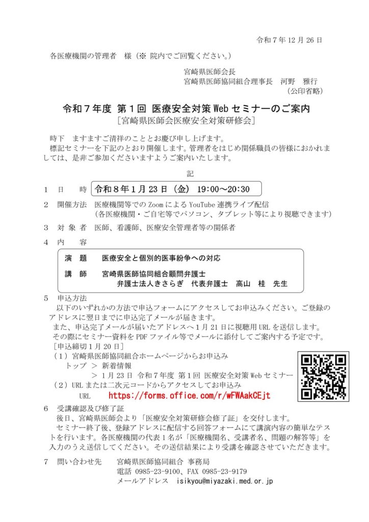 令和7年度 第1回医療安全対策Webセミナーのご案内